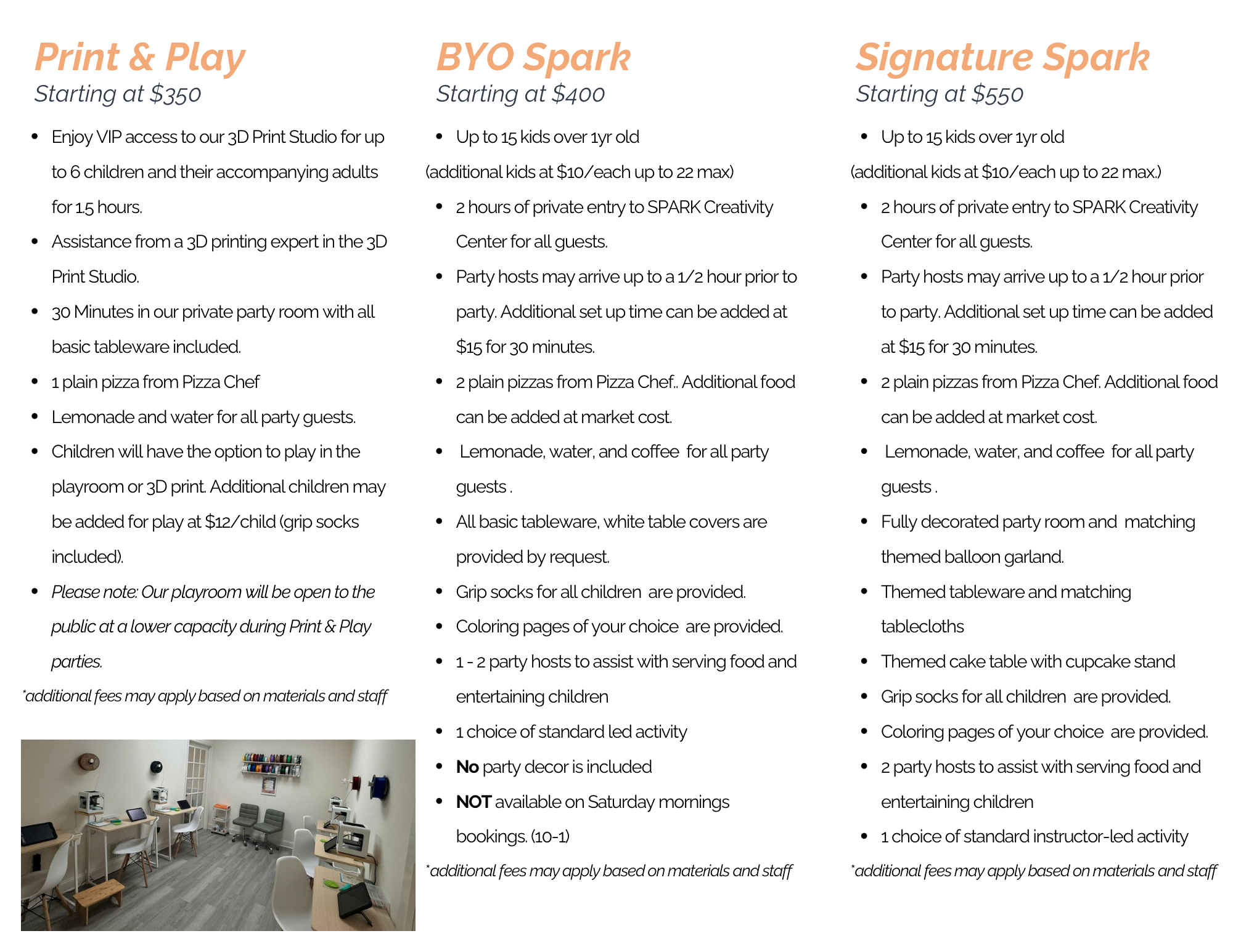 Step into a world of whimsy and wonder and let your imagination run wild as you celebrate amidst vibrant colors, playful activities, and boundless creativity. Our dedicated team will tailor every detail to ensure your event is unforgettable, from themed decorations to hands-on art projects and imaginative games. Whether it's a magical fairy tale adventure or a superhero extravaganza, we'll bring your vision to life in our inspiring space. So why settle for ordinary when you can make memories that sparkle?
